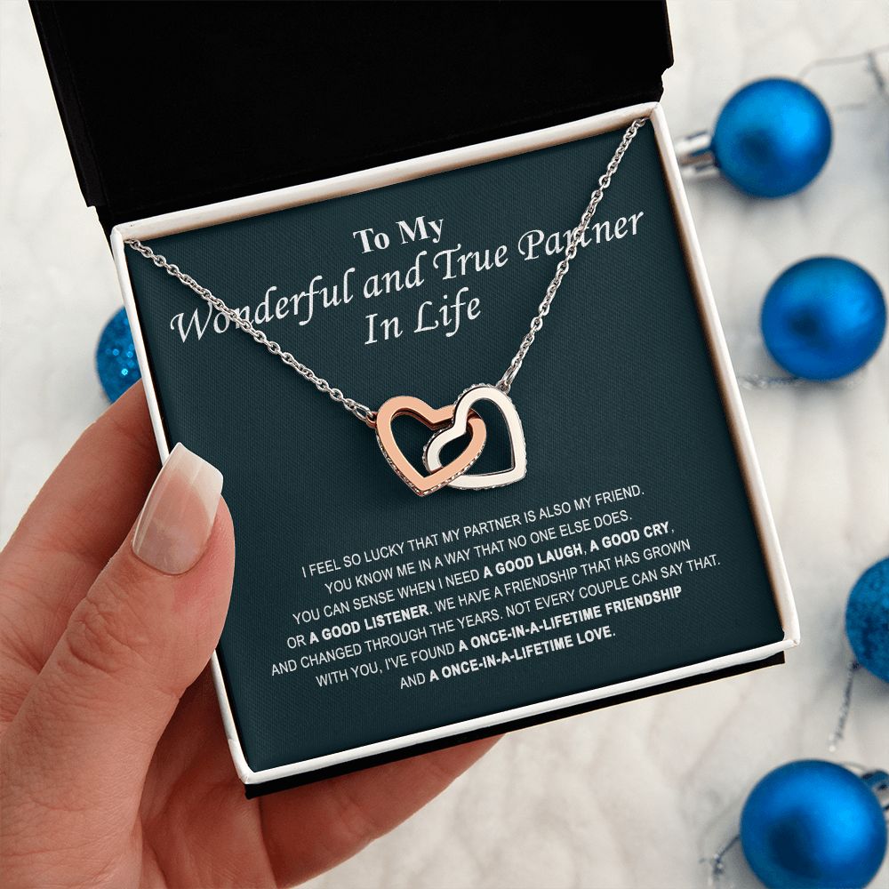 Give her the gift that symbolizes your never-ending love. Featuring two lovely hearts embellished with cubic zirconia crystals, this Interlocking Hearts necklace is the perfect accessory for everyday wear. Whether it's a memorable anniversary or a special birthday, make sure to dazzle your special someone by gifting them this stunning necklace.